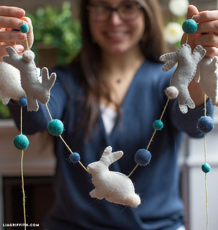 Комбинируя бумагу с тканью или изделиями из ниток, можно создать оригинальные варианты декора. Например, бумажные кролики с хвостиками в виде помпонов, которые несложно делать даже ребенку. Хвостики можно сделать из ваты, просто скатав ее в комочки.