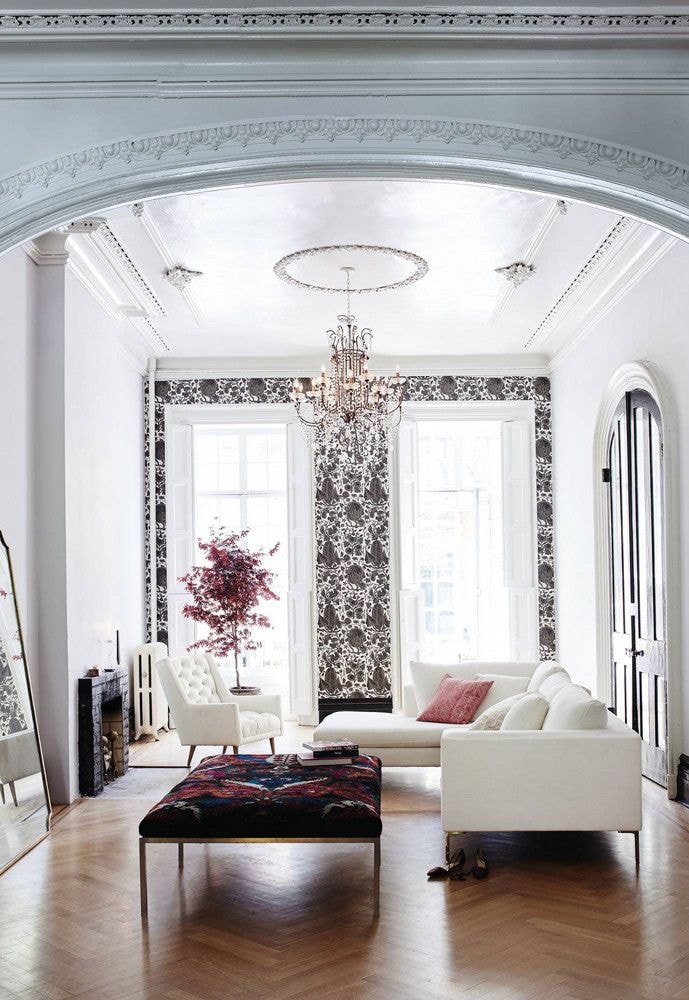 Интересно! Если гостиная в частном доме, то хорошо, когда она проходит через два этажа. Это придает пространству престиж и оптически увеличивает квадратуру.