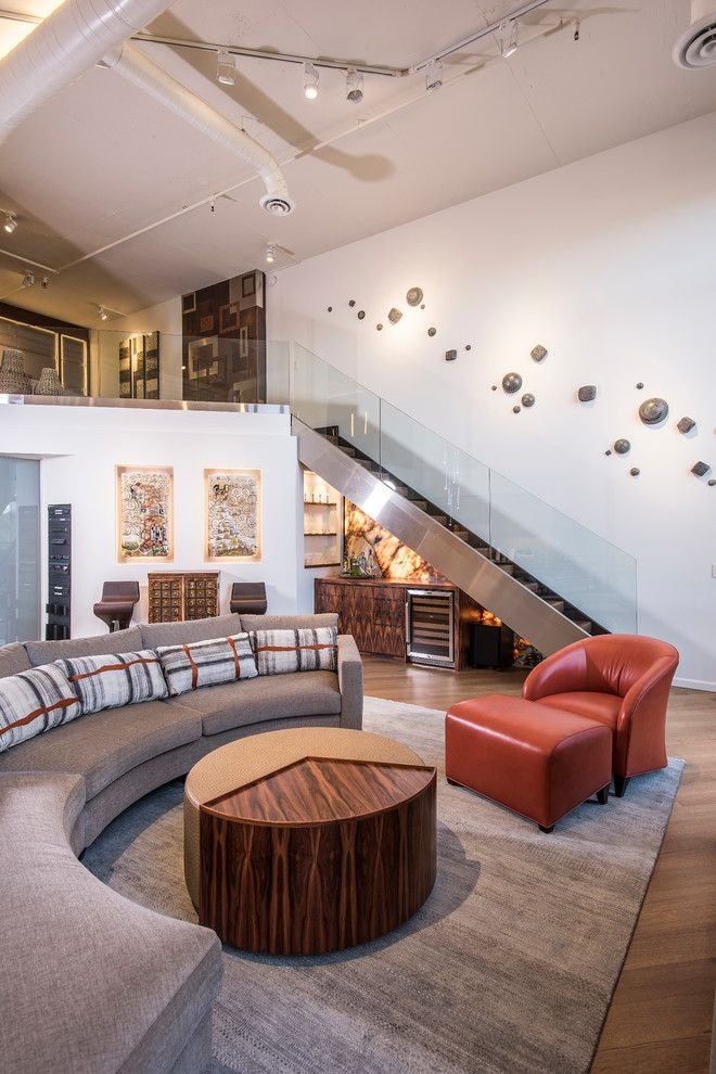 Интерьер гостиной 17 кв. с лестницей может быть очень интересным. С одной стороны, внутренние лестницы могут добавить престиж в помещение, но, с другой — являются практичным способом подняться на второй этаж. Аргументом для их размещения в зале обычно считается желание тесно связать весь дом, что способствует большему комфорту семьи.