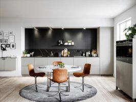 В идеальном случае кухня с гостиной должны быть расположены на одной оси с выходом на террасу. Столовая должна быть между гостиной и кухней. Это естественный буфер между комнатами, разделенными вымышленными барьерами.