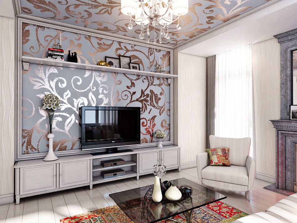 Когда дело доходит до оформления стен, то стоит наносить либо легкую краску в оттенках белого и бежевого, либо отдать предпочтение элегантным обоям. Флористические мотивы — настоящая сенсация в этом стиле. Как насчет весеннего или зимнего сада? Еще одна интересная идея состоит в лепнине, которая украсит даже гостиную квартиры. Мягкие стены — более современное решение.