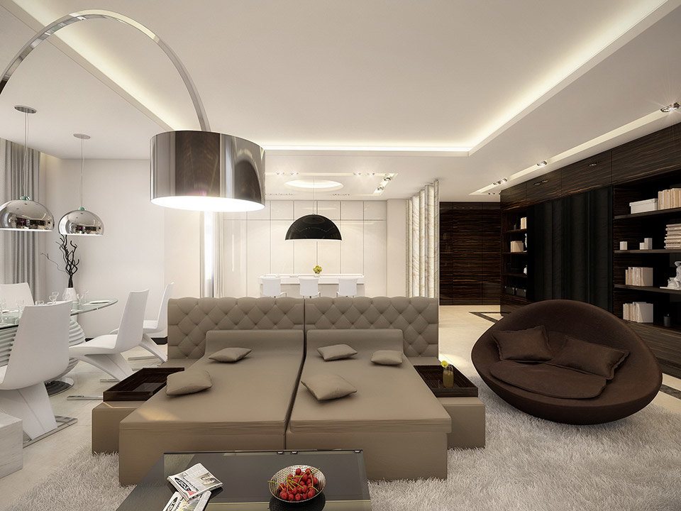 Гостиная в стиле хай-тек: новинки оформления высокотехнологичных интерьеров