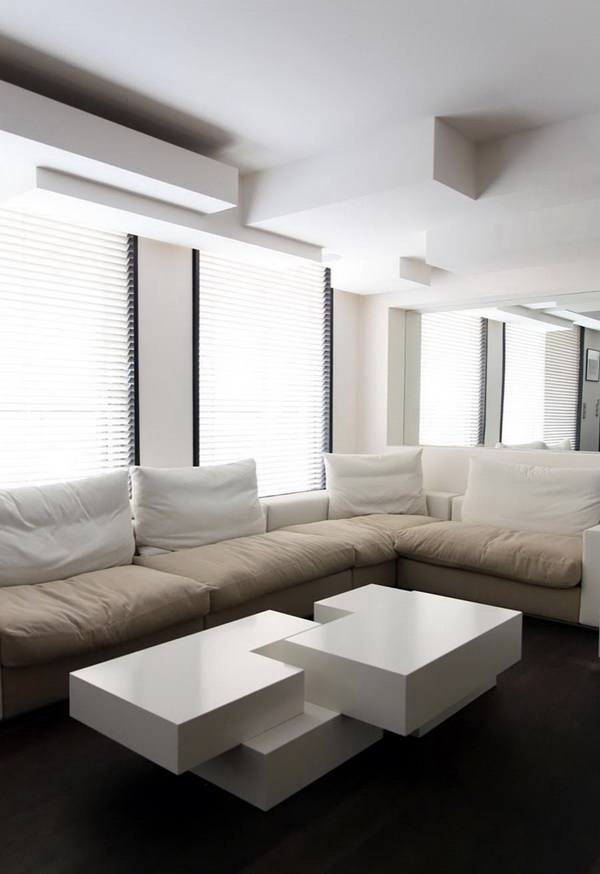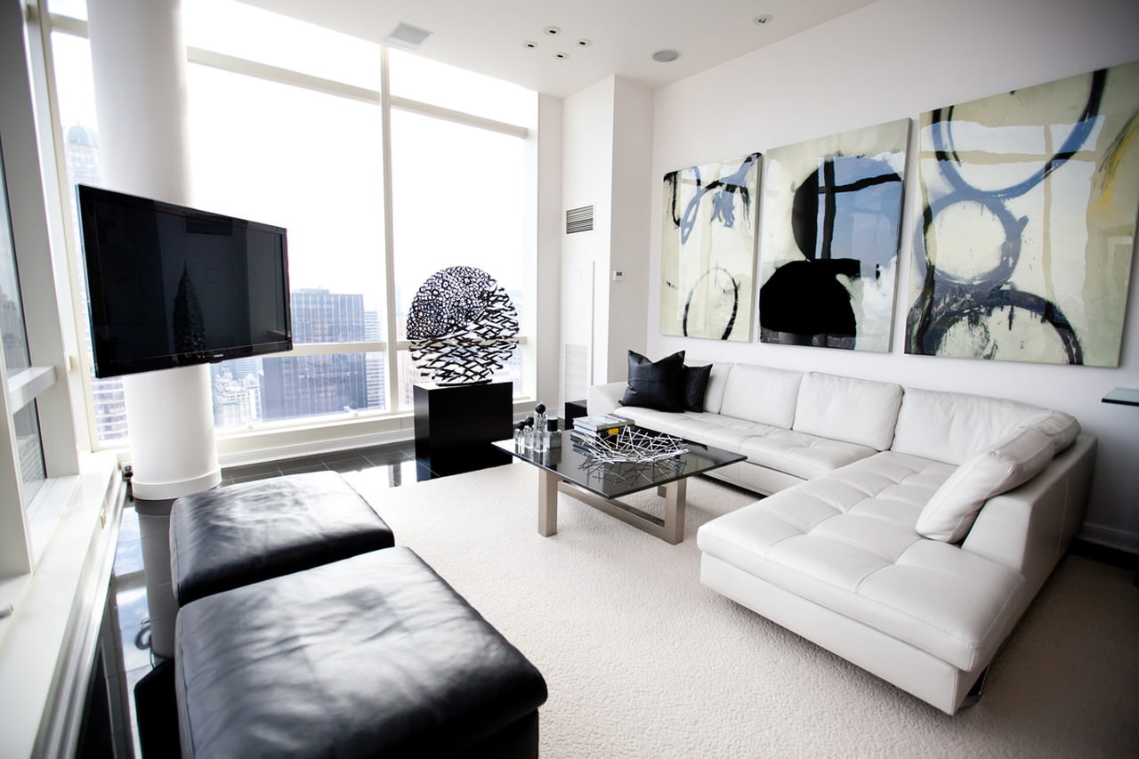 Интерьер гостиной в стиле хай-тек: выбор мягкой мебели