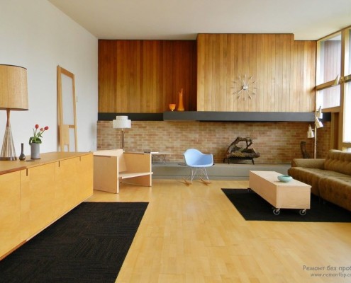 Этой же цели подчинены широкие модульные диваны и дизайнерские кресла-качалки от супругов Имз