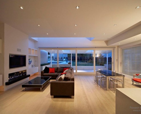 Дом современной архитектуры оформлен с помощью приёмов, характерных для минимализма –