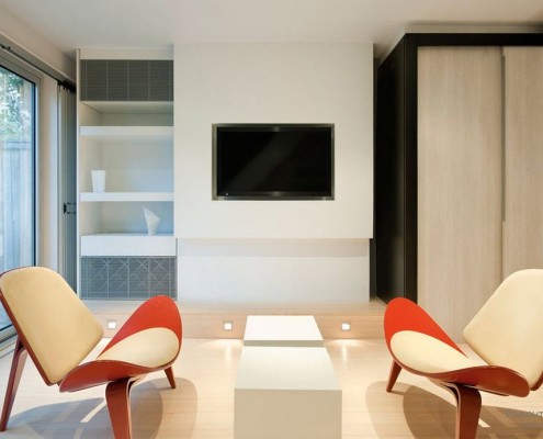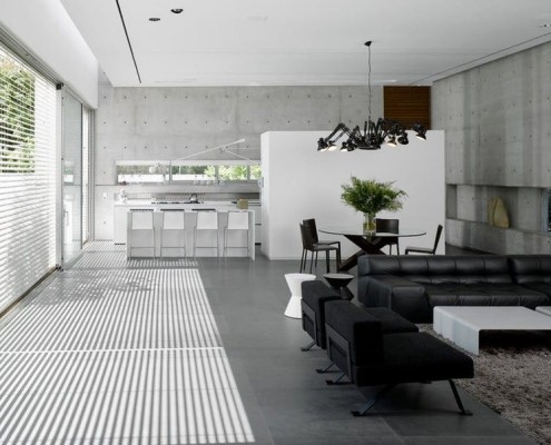 Философия минимализма стремиться оформить любое пространство с помощью минимального числа элементов, которые, в свою очередь, должны составлять композиционное единство, не затенённое никакими декоративными элементами. В этом контексте первенство отдаётся чистым и низким линиям, почти на уровне пола, с абсолютно монохромной гаммой потолков, полов, стен, и тщательно отобранной функциональной мебелью.