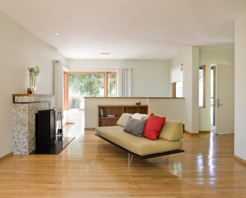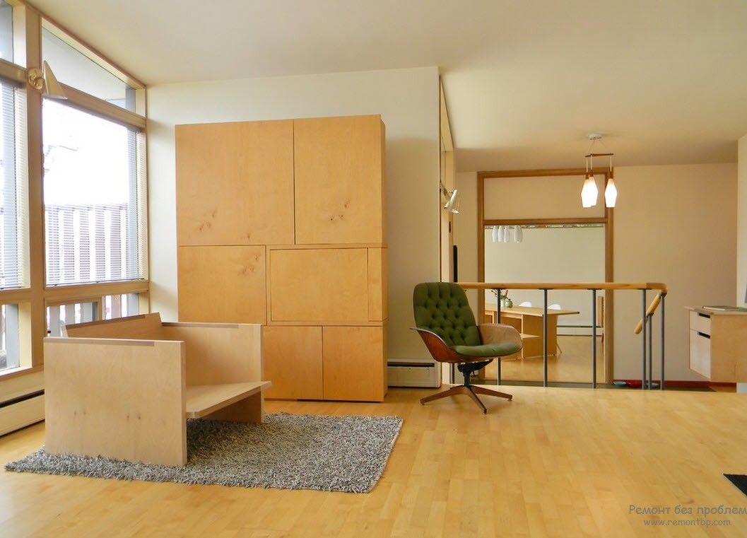 Мебель также подчинена концепции простоты и функциональности. Почти по-ленински – лучше меньше да лучше. Мебель не всегда визуально фиксируется, активно используются скрытые полки и шкафы в современном или восточном (японском) стиле.