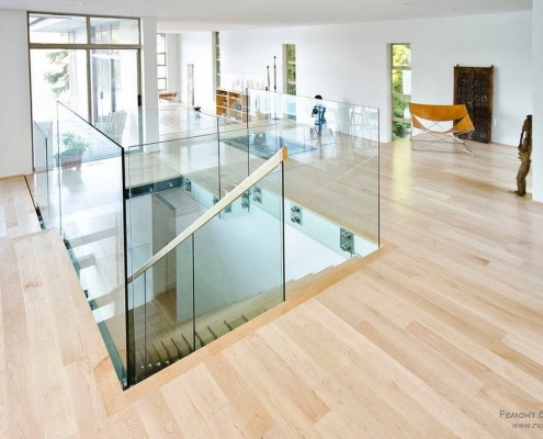 покрытием пола из дорогой древесины, окна во всю стену