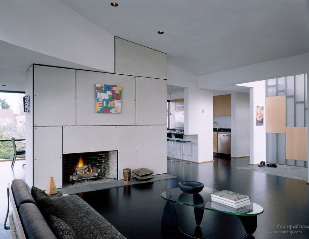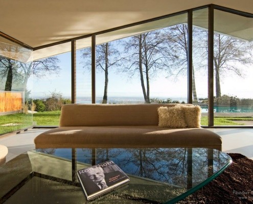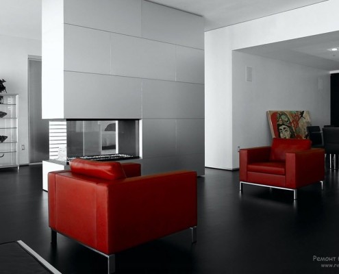 большими поверхностями из стекала, функциональной стильной мебелью