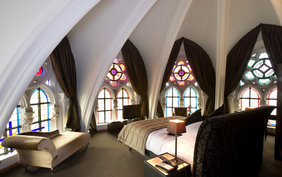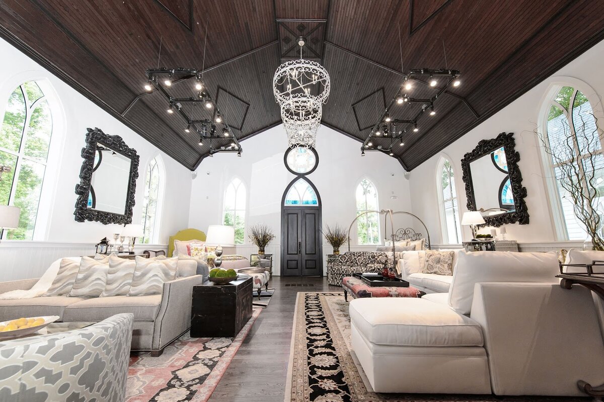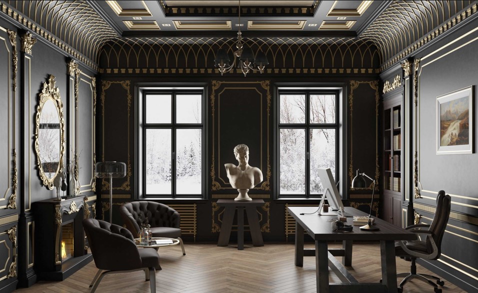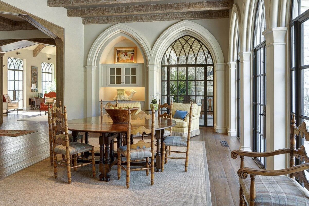 Высокие сводчатые потолки — одна из ключевых особенностей готического интерьера. Они создают ощущение простора и устремлённости вверх, подчёркивая вертикальность пространства. Своды опираются на стрельчатые арки, что добавляет вертикальную направленность интерьера. Такие потолки обильно украшены декоративными элементами, такими как лепнина, фрески и витражи. Это придаёт помещению роскошь и величественность, свойственные готическому стилю. Высокие сводчатые потолки делают комнату светлой и воздушной, создавая атмосферу загадочности и таинственности.