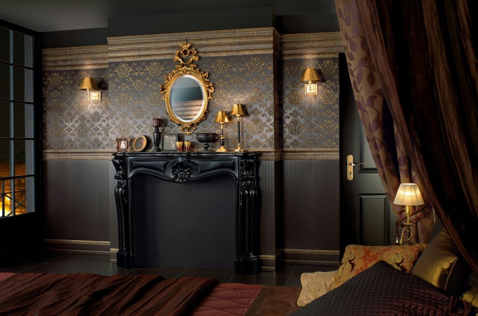 Текстиль в готической гостиной представлен тяжёлыми дорогими тканями с пышной драпировкой и разнообразным декором. Освещение может быть дополнено магическими хрустальными шарами, оригинальными светильниками и свечами.