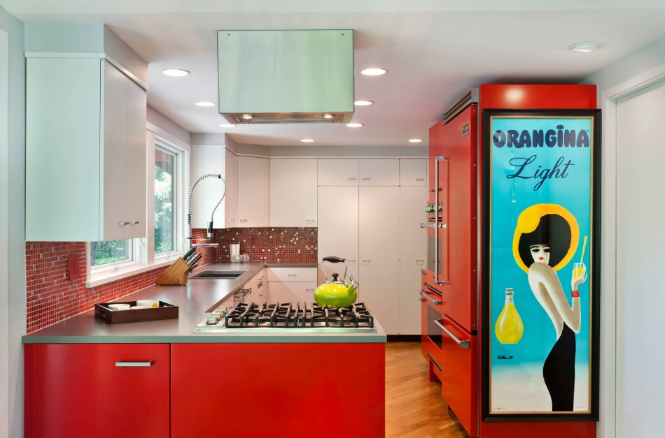 Эксперты советует воздержаться от красной краски для своих кухонных идей. Красная кухня напоминает дрянную забегаловку в американском стиле с кожаными сиденьями. Красный – смелый цвет и иногда может быть отвлекающим, переполняющим пространство.