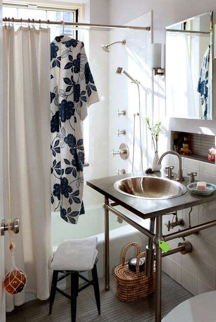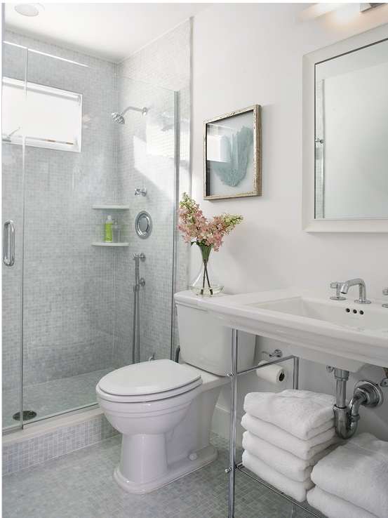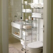 Всевозможное приспособления по хранению полотенец, предметов первой необходимости и прочих вещей обязательно должны присутствовать в небольших ванных комнатах.