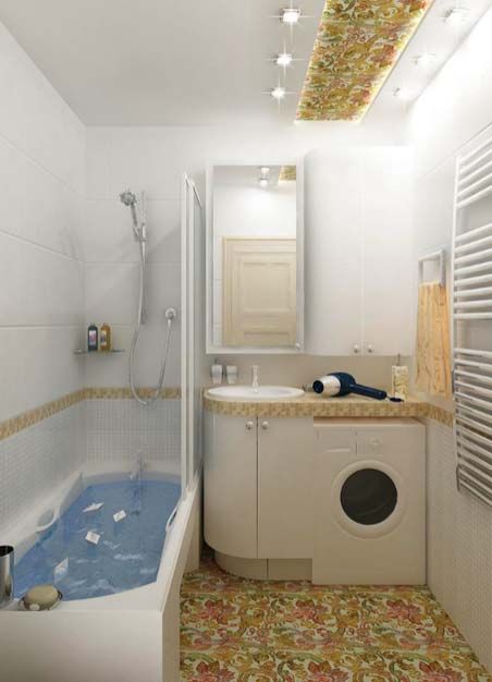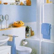В маленькой ванной нужно стараться отделывать потолок, стены и пол в светлых тонах;