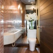 На сегодняшний день очень модно использовать в ванной комнате японский этно-стиль. С его названия сразу можно понять, что это удовольствие не из дешевых. Ведь чтобы создать в комнате атмосферу этой страны нужно использовать такие натуральные материалы как: шелк, рисовая бумага и дорогие породы деревьев.