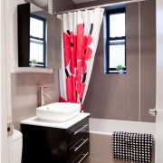 Придерживаясь направления в стиле модерн можно выбрать для ванной комнаты угловую ванну или душевую кабинку не большого размера. Не стоит забывать и об аксессуарах, они должны быть нестандартной формы. Преимуществом этого направления является то, что с его помощью можно создать уникальный интерьер ванной комнаты, не потратив много денег.