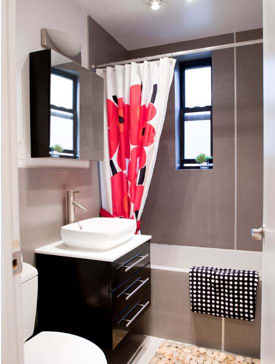 Вряд ли кому-то нравится ступать теплыми ножками на холодную плитку. Исходя из этого, в ванную нужно приобрести коврик. Он должен дополнять общий вид комнаты и гармонично смотреться со всеми остальными предметами. Чтобы лишний раз не тратиться, лучше приобрести качественный коврик (желательно чтобы он был сделан на прорезиненной основе), так как дешевое изделие после нескольких стирок потеряет свой начальный вид.