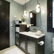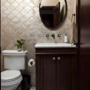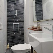 Этот стиль характеризируют такие черты как: лаконичность, строгость, продуманность. Для него используются экологически чистые материалы и аксессуары, которые напоминают Японию. Если же владельцы квартиры не располагают большими деньгами, то в таком случае можно подобрать материалы с более приемлемой ценой. Для этого нужно купить кафель с тематическим рисунком (на нем могут быть изображены ветки сакуры или традиционные японские домики).