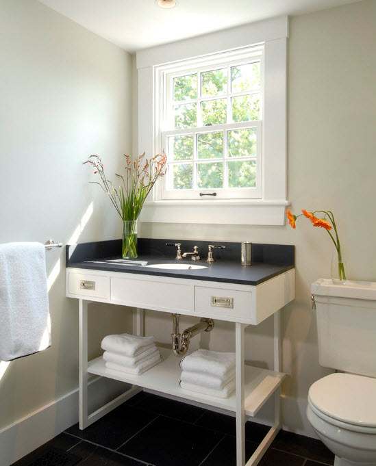 Под умывальником зона практически никогда не используется, а зря. Подобная площадь может так же принести пользу.