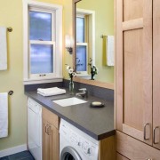 Бытовую технику, такую как водонагреватель или стиральная машина желательно спрятать в шкафчики или ниши.