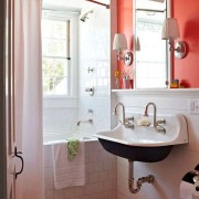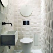 В этом направлении приветствуется сочетание ярких цветов и тяжело-сочетаемых материалов. Очень активно используется дизайнерами зонирование комнаты (когда помещение визуально разделяется на несколько частей). Сантехника в таком случае должна располагаться функционально. В малом помещении ее можно спрятать в стену, чтобы освободить дополнительное пространство.