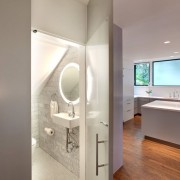 Равномерное освещение в светлой ванной комнате способно визуально увеличить помещение.