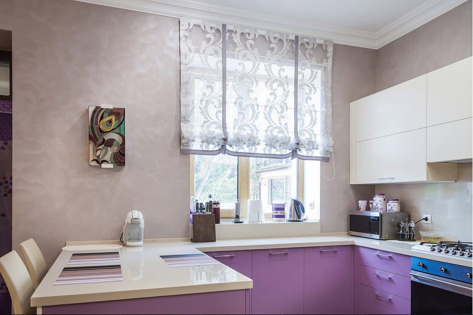 Шторы на кухню сиреневого цвета