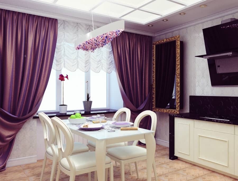 - Шторы на кухню сиреневого цвета