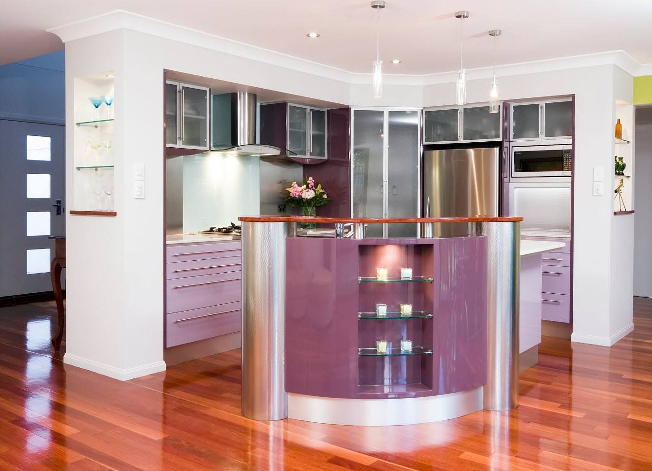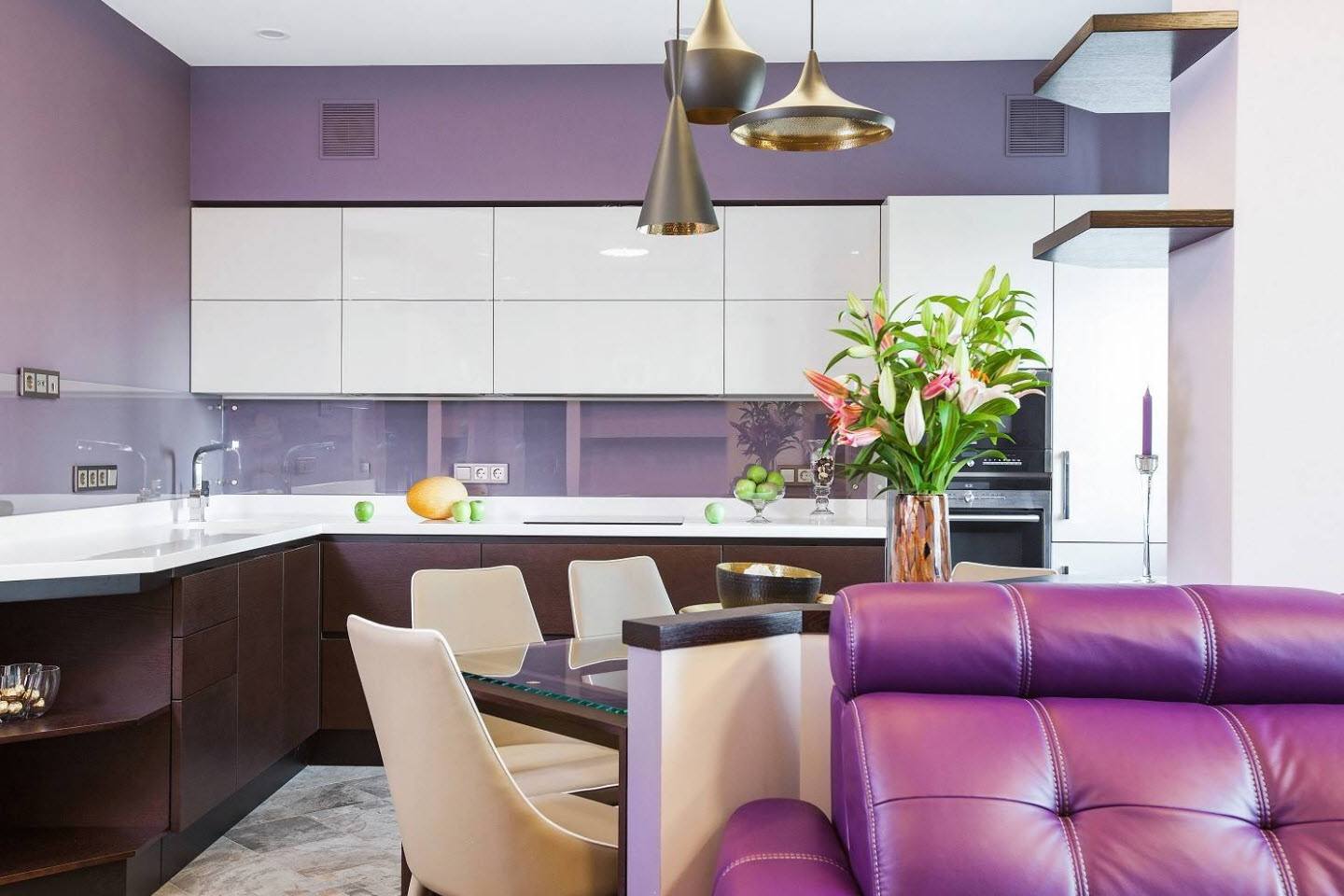 Кухня является одним из самых важных помещений в любом доме, это место и для готовки, и для потребления еды. Именно поэтому мы так пытаемся разнообразить интерьер кухни и сделать её как можно уютнее и красивее. В современном мире существует огромное разнообразие дизайнов интерьера, а поэтому каждый человек хочет обустроить помещение как можно более оригинально и стильно. Одним из самых интересных цветов в интерьере может выступать сиреневый цвет, так стремительно набирающий популярность в последнее время.