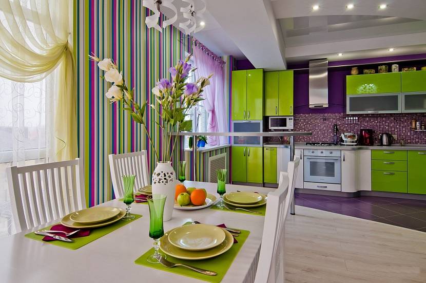 - Обои в кухню сиреневого цвета