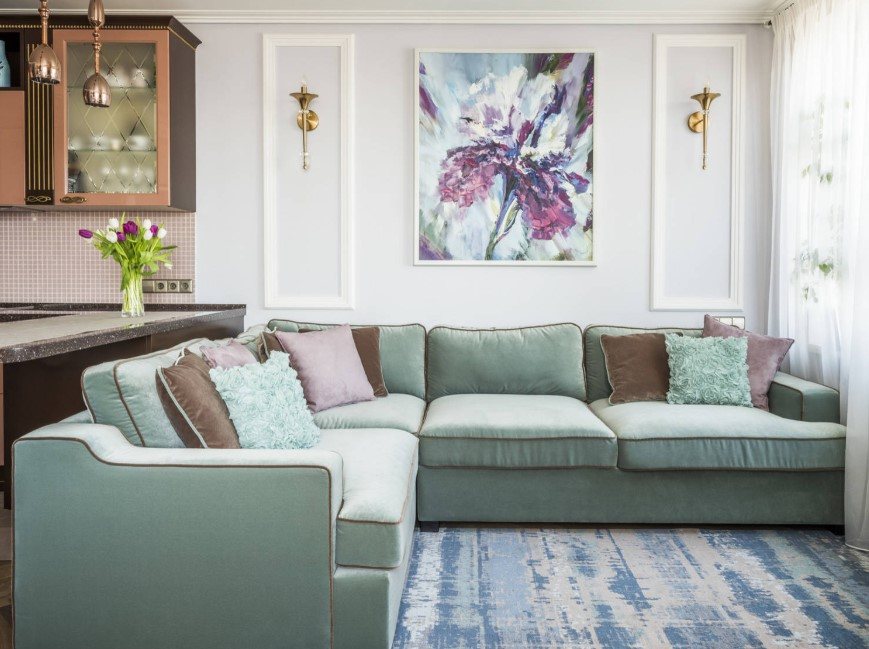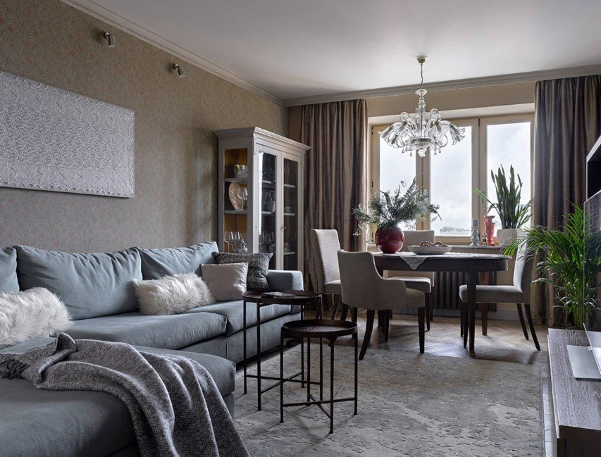 Довольно распространенный вариант – это объединение гостиной с прилегающей кухней и оформление этого пространства в едином стиле интерьера, например, в классическом, современном или романтичном провансе.