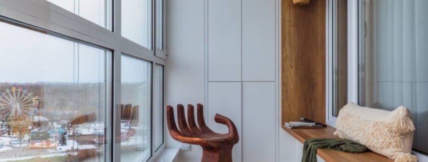 Разница между «складом» ненужных вещей и компактным расположением отсеков для хранения очевидна. Всё, что вам остаётся, это установить на закрытом балконе шкаф, стеллажи, столы-сундуки, комоды и вместительные навесные полки. Если балкон прилегает к кухне, то его площадь станет прекрасным местом для хранения продуктов и посуды. В случае соседства балкона со спальней можно обустроить на дополнительных метрах гардеробную.