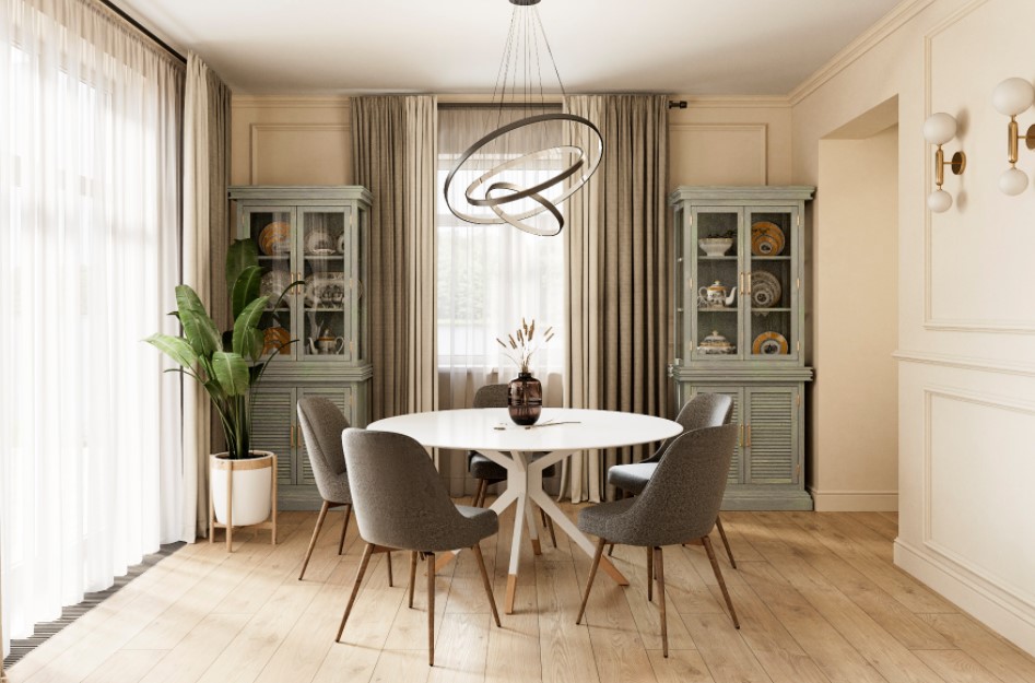 Можно использовать разные цвета стен для зонирования пространства. Например, зона отдыха может быть оформлена в теплых тонах, а столовая – в холодных.