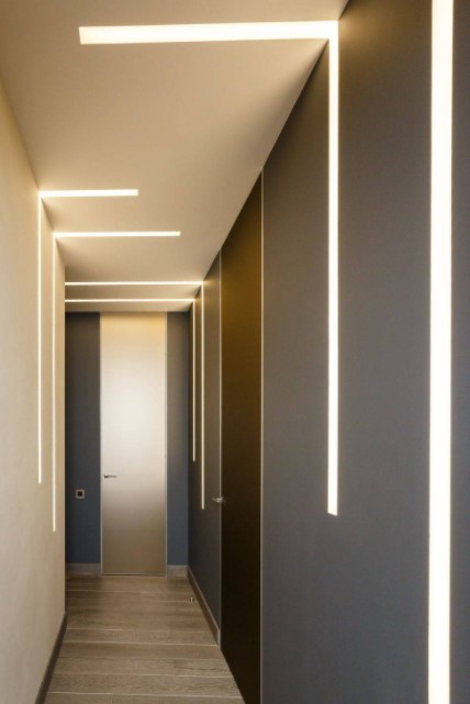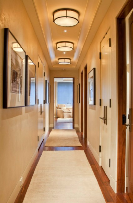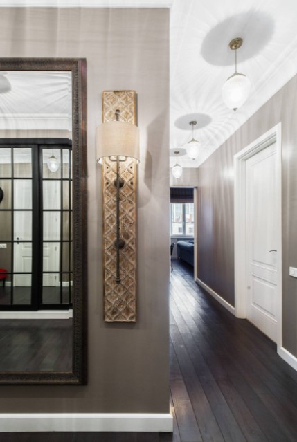 В обычных среднестатистических квартирах коридор лишен источника естественного освещения в виде окна. Поэтому важно ликвидировать дефицит света путем оснащения коридора качественным и достаточно ярким искусственным освещением. Это могут разнообразные современные светильники, подвесные потолочные люстры, точечные светильники, светодиодная подсветка, настенные лампы и бра.
