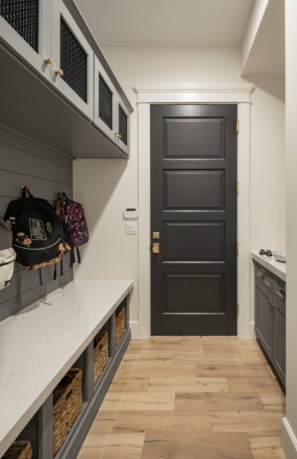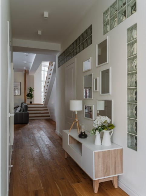 Перед началом отделочных работ готовим предварительный проект, в который войдет несколько основных этапов. Прежде всего, это грамотное зонирование, в результате которого получится две основных функциональных зоны: входная и непосредственно коридор или прихожая. Зонирование в узком коридоре можно запланировать и выполнить разными способами, например, с помощью мебели, цвета стен, различных видов напольного покрытия.
