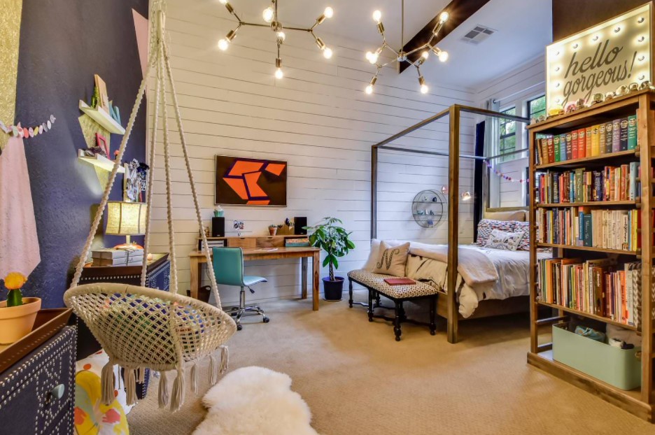 Самый лучший вариант – это компромисс. Можно сделать оформление комнаты таким, как его видят сами родители, а для реализации желаемого подростком – выделить отдельную зону или целую часть комнаты. К примеру, стол с компьютером и кресло можно поместить за удобные раздвижные панели, сделать, как бы отдельной приватной зоной или же выделить место на одной из стен для развешивания различных комиксов, картин или плакатов.