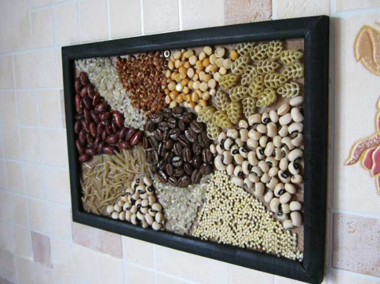 Семена хороши и для идей украшения домашней мебели. Красиво смотрится столешница в кухне, обклеенная красивыми орнаментами, состоящими из семян. А еще семена можно использовать для украшения ножек стульев и столов, подлокотников домашней мягкой мебели.