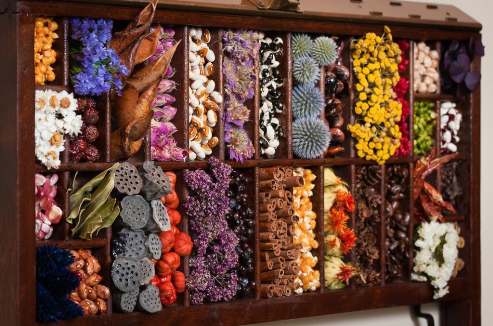 Есть множество других подобных растений, которые подойдут для создания домашнего натурального декора: гипсофила, декоративный лук, лимониум, трясунка или разного вида ячмень. Оформляя домашний интерьер с помощью сухих букетов, не стоит ограничиваться только сухими растениями. В ход могут пойти и другие природные материалы: шишки, засушенные грозди рябины, калины, красивые камни или любой другой сухой, хорошо сохранившийся природный материл.