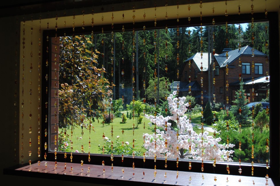 Удивительную атмосферу создают, вышедшие недавно на трендовые позиции шторки из бусин. Нужно лишь выбрать соответствующую по цвету шторку или сделать ее своими руками. Мало того, с помощью одной такой детали можно задавать настроение всему интерьеру. Например, сделать его веселее с помощью ярких бусин, или наделить комнату легкостью прозрачными камешками. Не стоит забывать про варианты деревянных штор, которые нередко вешают на межкомнатные проемы. Различие между ними и оконными занавесками в размере бусин – для окон следует выбирать помельче.