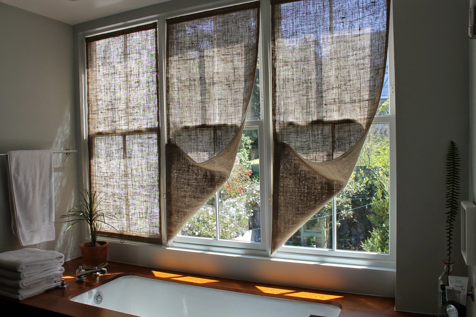 Как бы нелепо это не звучало, но окна в мешках, а точнее мешковина на окнах – это очень привлекательный вариант оформления для кухни в винтажном стиле вроде «кантри» или деревенского. Льняные ткани отличаются долговечностью и простотой в уходе.