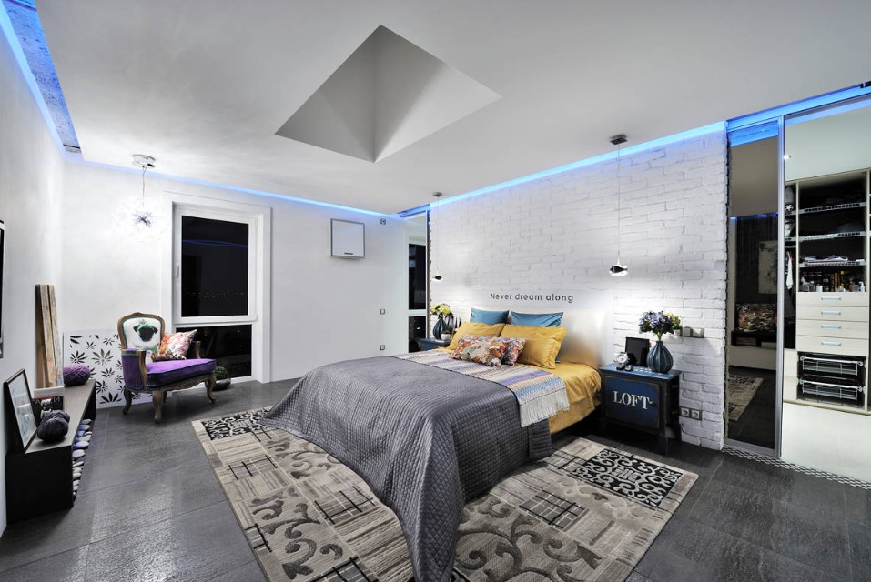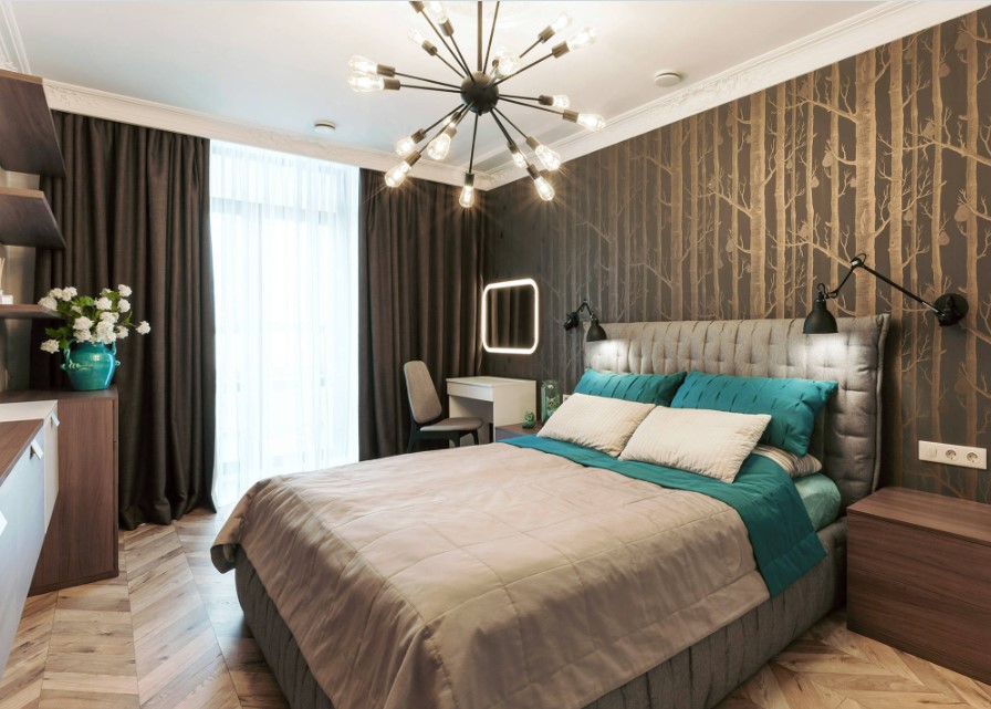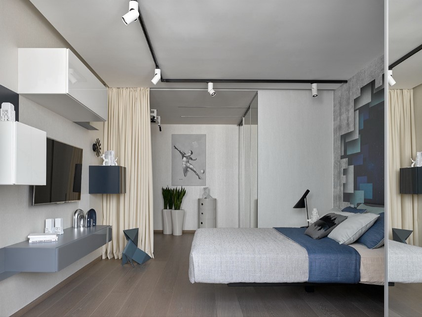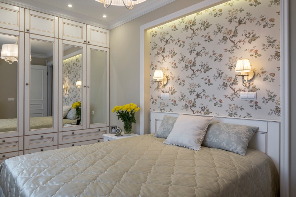 Помогут с визуальным расширением пространства спальни зеркальные шкафы. Это современное решение, сочетающее в себе и необходимую практичность, и современный стиль, который сам по себе – уже изюминка помещения.