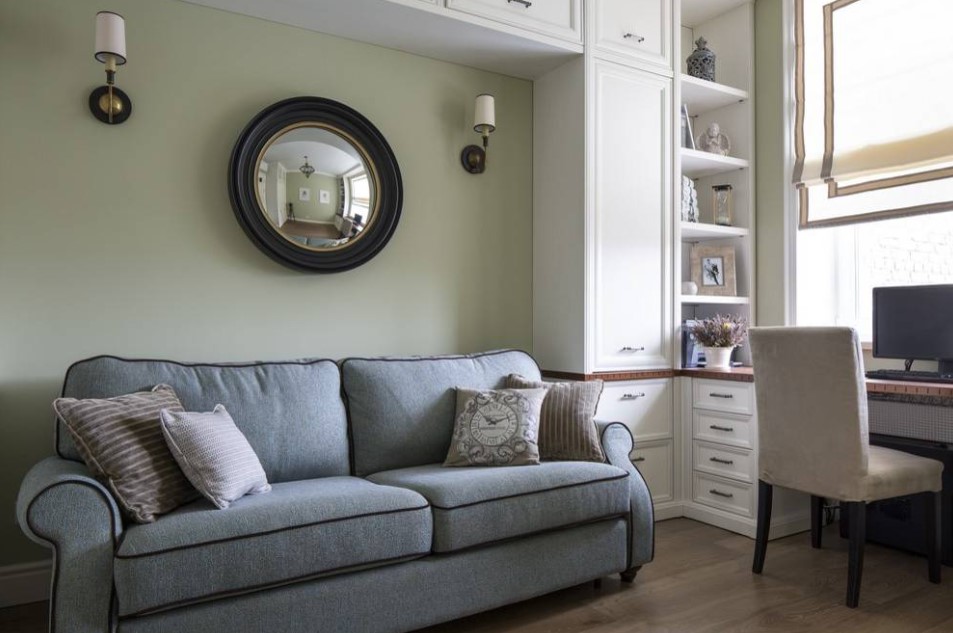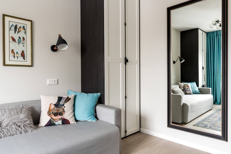 В узкие ниши комнаты также можно поместить зеркало, преимущественно длинное и узкое. Это прекрасное месторасположение для зеркала, ведь с ним будет так удобно оценивать свой образ.