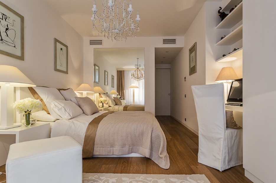 Зеркала разного типа, размера и длины станут отличным решением для дизайна маленькой спальни. Их можно размещать в разных концах комнаты, в разных ее местах, подчеркивать их красоту правильным освещением, и в результате иметь очень свободную, воздушную спальню, в которой не так много места по факту, но визуально очень даже просторно и уютно.