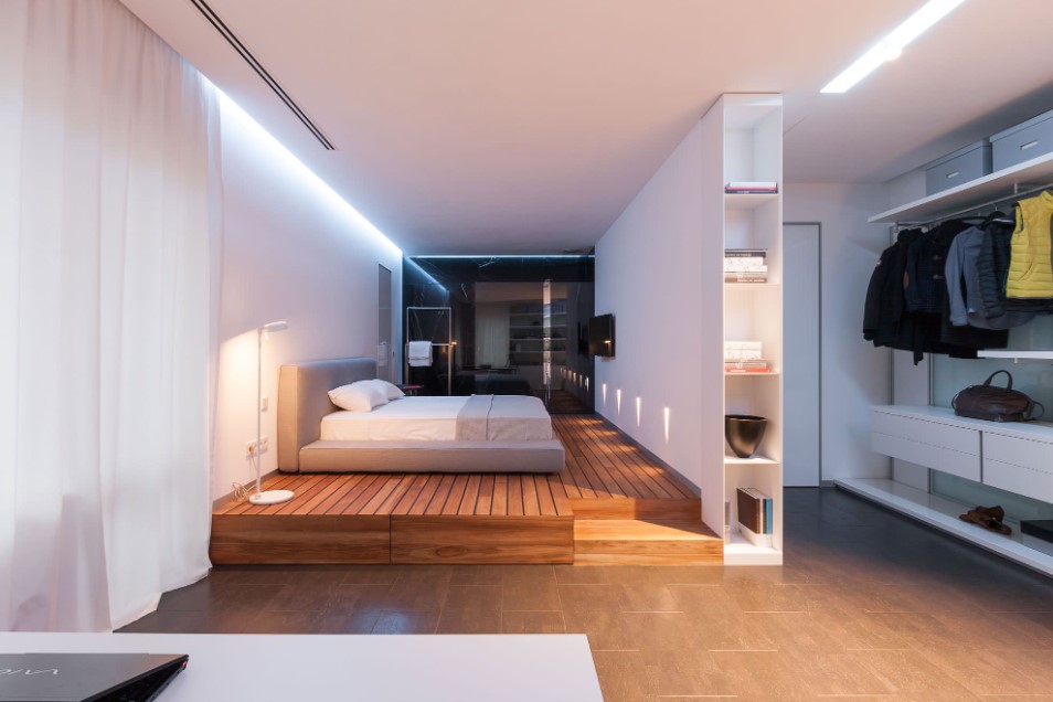 Зеркала могут создать яркую иллюзию свободного пространства благодаря своей главной способности – сделать комнату больше свободнее, чем она есть по факту. Зеркальные дверцы такого современного гардероба помогают убрать необходимость в отдельно взятых зеркалах и зеркальных панелях. Они освобождают свободное место на стенах, на других поверхностях.
