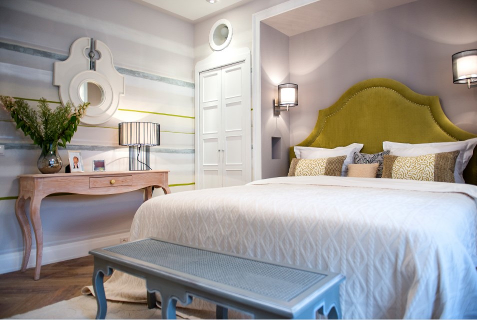 В спальне небольшого размера любой аксессуар или декор элемент обязательно должен быть тщательно продуман, в противном случае он просто станет частью неуютного захламления комнаты.