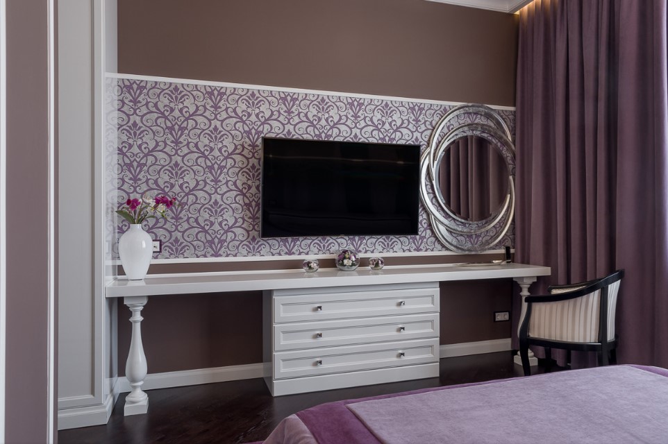 В планировке дизайна небольшой спальни, обычно нет таких больших возможностей для размещения различных аксессуаров, а потому следует тщательно продумать эти моменты. Если места совсем мало, зеркало, как один из вариантов декора, можно разместить прямо в шкафу или вдоль него.