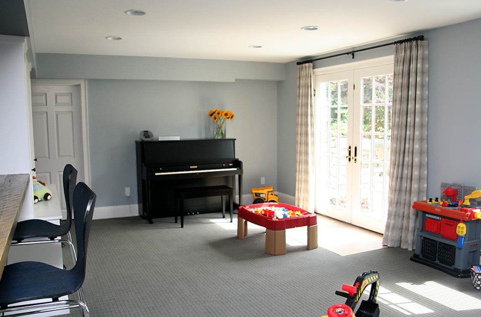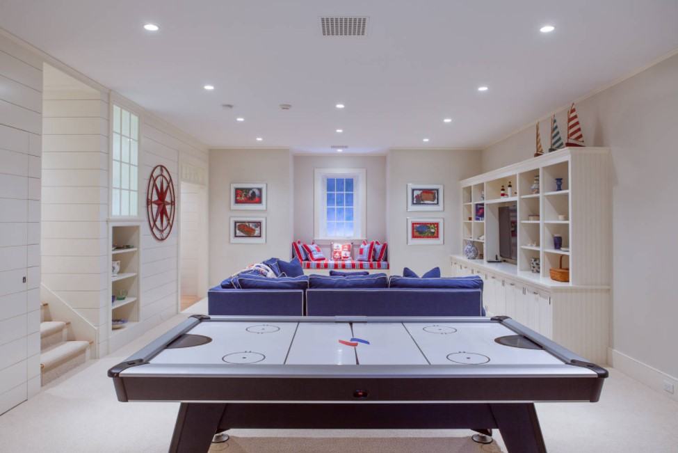 Немаловажный элемент – хорошее освещение. В зависимости от планировки и зонирования освещение может быть многоуровневым, с различными подсветками, регулировкой степени яркости. Еще один важный момент – это наличие хорошей вентиляции или возможности проветривания игровой комнаты.