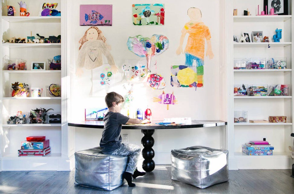 - творческая атмосфера для ребенка, увлекающегося рисованием с мольбертами, красками, собственными картинами на стенах.