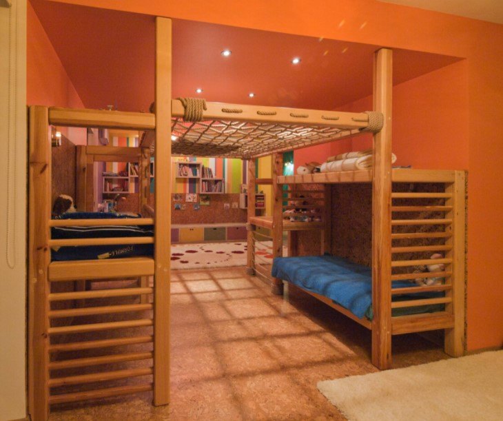 Если ребенок любит активные подвижные игры и спорт, то обязательно сделайте шведскую стенку. Вариантов множество, качественное и интересное обустройство игровой будет зависеть от Вас. Алгоритм прост: определяем увлечение или склонность ребенка, продумываем проект воплощения в игровой форме любимого дела Вашего чада, выбираем безопасные и качественные материалы и эргономично используем пространство. Ребенок, который занят любимым делом или хобби, не только развивается, но и учится организовывать свое свободное время с пользой.