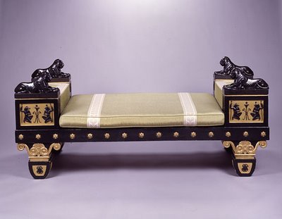 Подбор мебели занимает не последнее место в формировании интерьера в египетском стиле. Как правило, именно мебель и текстиль наполняют помещение особым богатством и роскошью, поэтому «сэкономит» тут не получиться. Мебель обязательно должна быть изготовлена из дорогих пород дерева. Особенно стоит отметить дизайн мебели. Мебель в египетском стиле имеет весьма оригинальную форму: ножки в виде звериных лап, подлокотники в виде тигров и пантер, египетские орнаменты на фасадной части. В качестве украшения может выступать не только резьба египетской тематики, но и другие декоративные приемы, такие как инкрустация, слоновой костью или драгоценными камнями (малахит, лазурит, бирюза и т.д.).